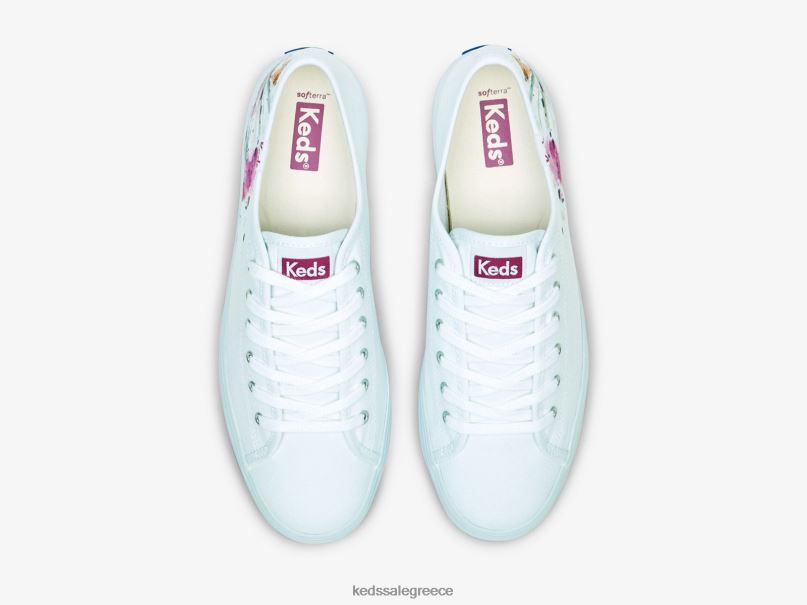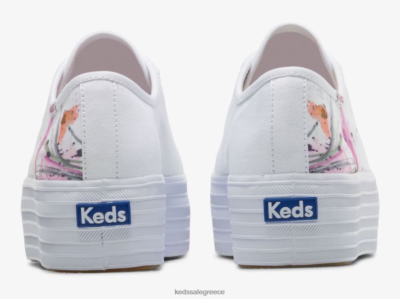 γυναίκες Keds τριπλό πάνινο ζωγραφικό λουλουδάτο αθλητικό παπούτσια λευκό ροζ 006DX161